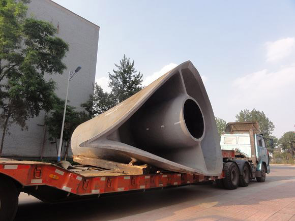 大型船用类铸件,包括:挂舵臂、艉球、后尾轴架、艏柱、舵销承座、舵杆承座、下舵钮、下舵承本体等,均已批量生产,外观质量好,尺寸精度高,综合性能高。