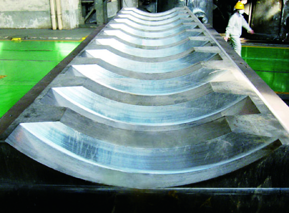 多年来,先后制造了近百件船用类铸件,主要用户有大连船厂、广船国际有限公司、江苏新时代船厂、扬子江船业集团等著名企业,同时该类铸件出口到韩国、德国、日本等国家。为中冶京城生产的32万吨原油船挂舵臂,尺寸为10500mmX6700mmX2400mm,毛重达187吨;艉球轮廓尺寸为8472mm×2810mm×4640mm,毛重达107吨。