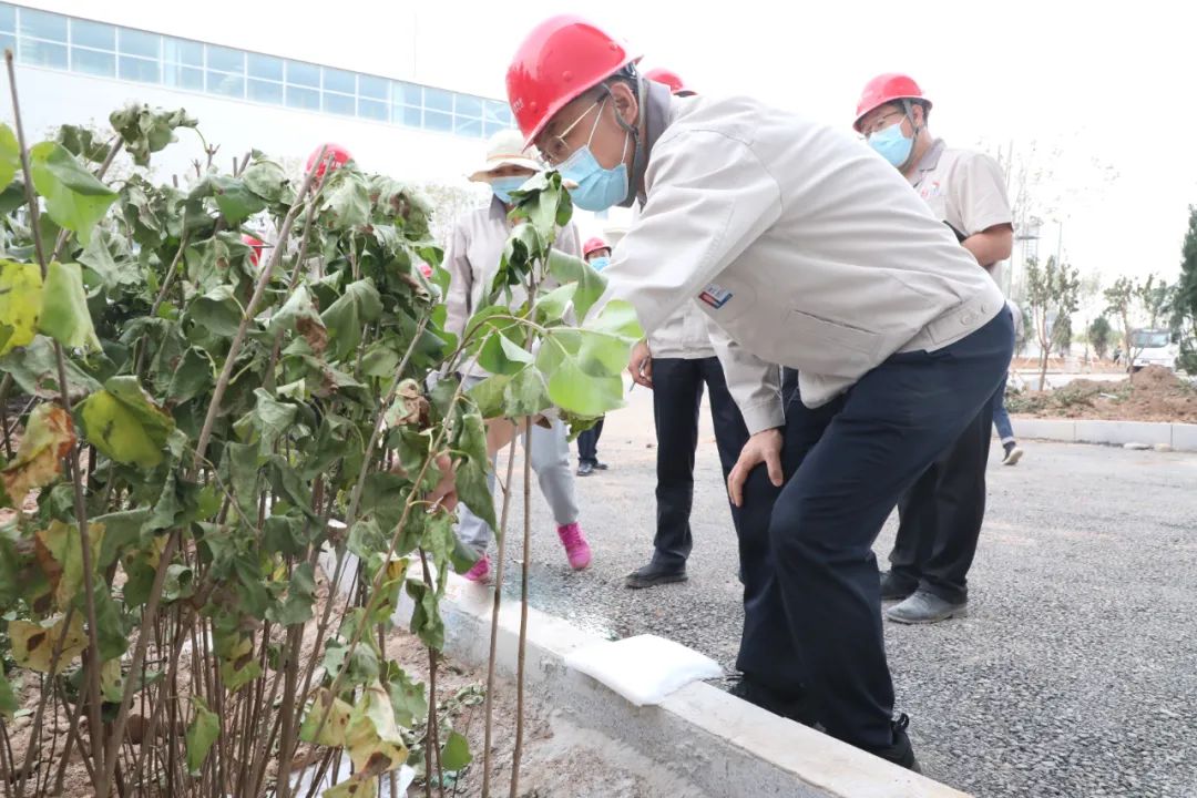 当前,厂区绿化正按照先乔木后灌木再地被的顺序超常组织,已有三条道路基本完成主要树种种植。韩珍堂详细了解栽种树木种类布局,指出要合理规划,注重细节,不仅要打造品种丰富、四季多彩的园区景观,也要注重园区围墙外环境治理,营造优美舒适的办公环境。要全速推进项目建设,确保各个环节衔接有序,在做好道路清理工作的基础上加快推进绿化工程进度,确保在最佳时节完成树木种植工作。