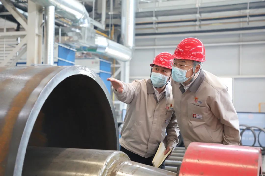 生产现场弧光闪烁、焊花飞舞,韩珍堂边走边看,同相关单位负责人充分沟通,一边了解实际情况一边提出指导意见。他强调,持续深化信息化与工业化融合发展,是新发展阶段制造业数字化、网络化、智能化发展的必由之路,是数字时代建设制造强国、网络强国和数字中国的紧密结合点,要不折不扣贯彻落实国家、省市重大决策部署,加快信息化发展步伐,全方位提升精细化管理水平,以“灯塔工厂、智能工厂、黑灯工厂”建设引领公司高质量高速度发展再上新台阶。