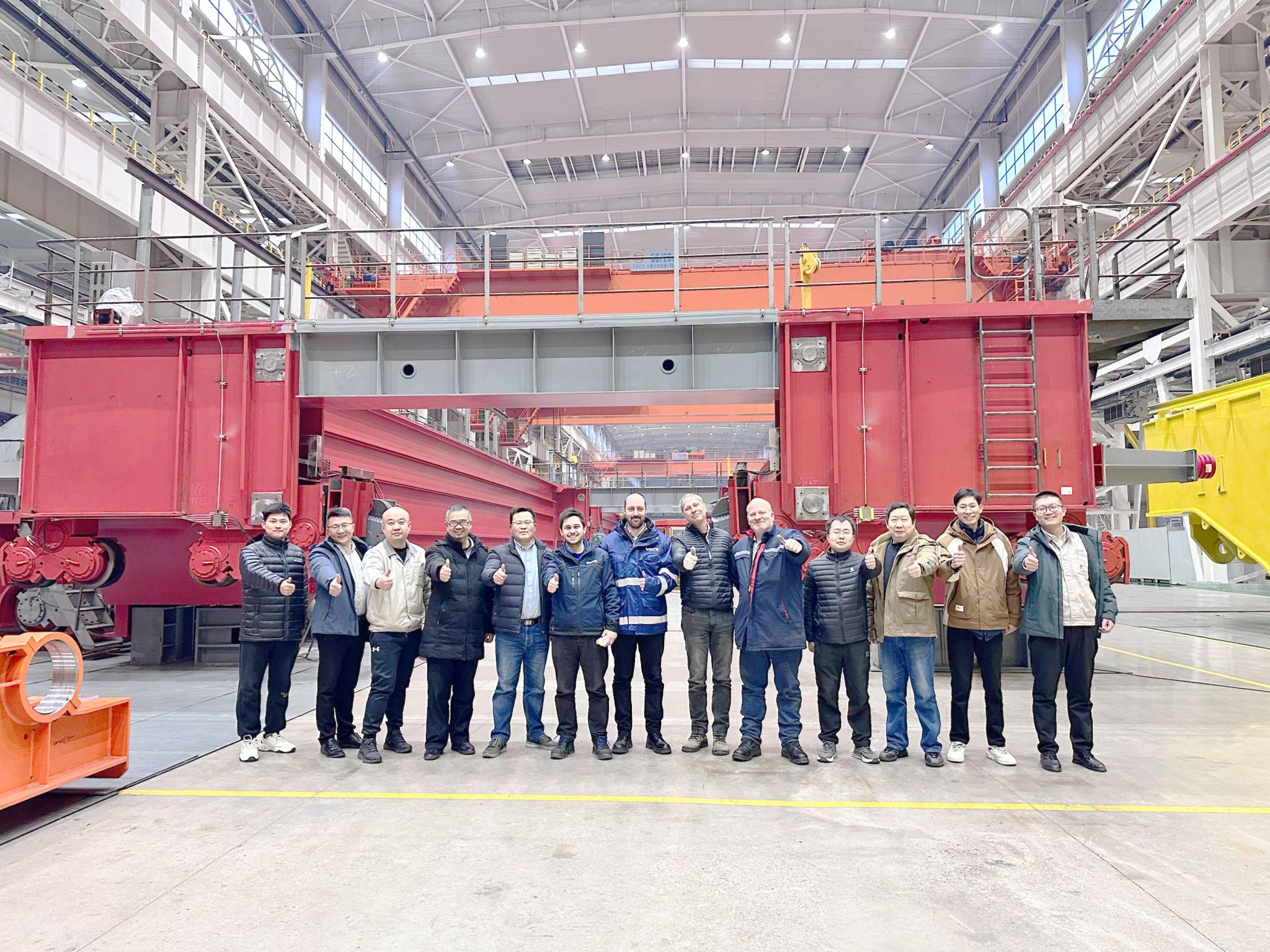 太重深厚的技术底蕴赢得用户高度认可,为满足用户使用需求,设计团队在规划起重机主体钢结构时采用有限元分析精密计算,有效降低了对厂房的承载要求。精益求精只为用户的满分体验,在严格的检验标准下,起重机顺利完成工厂验收,收获了国际、国内各方的一致好评。