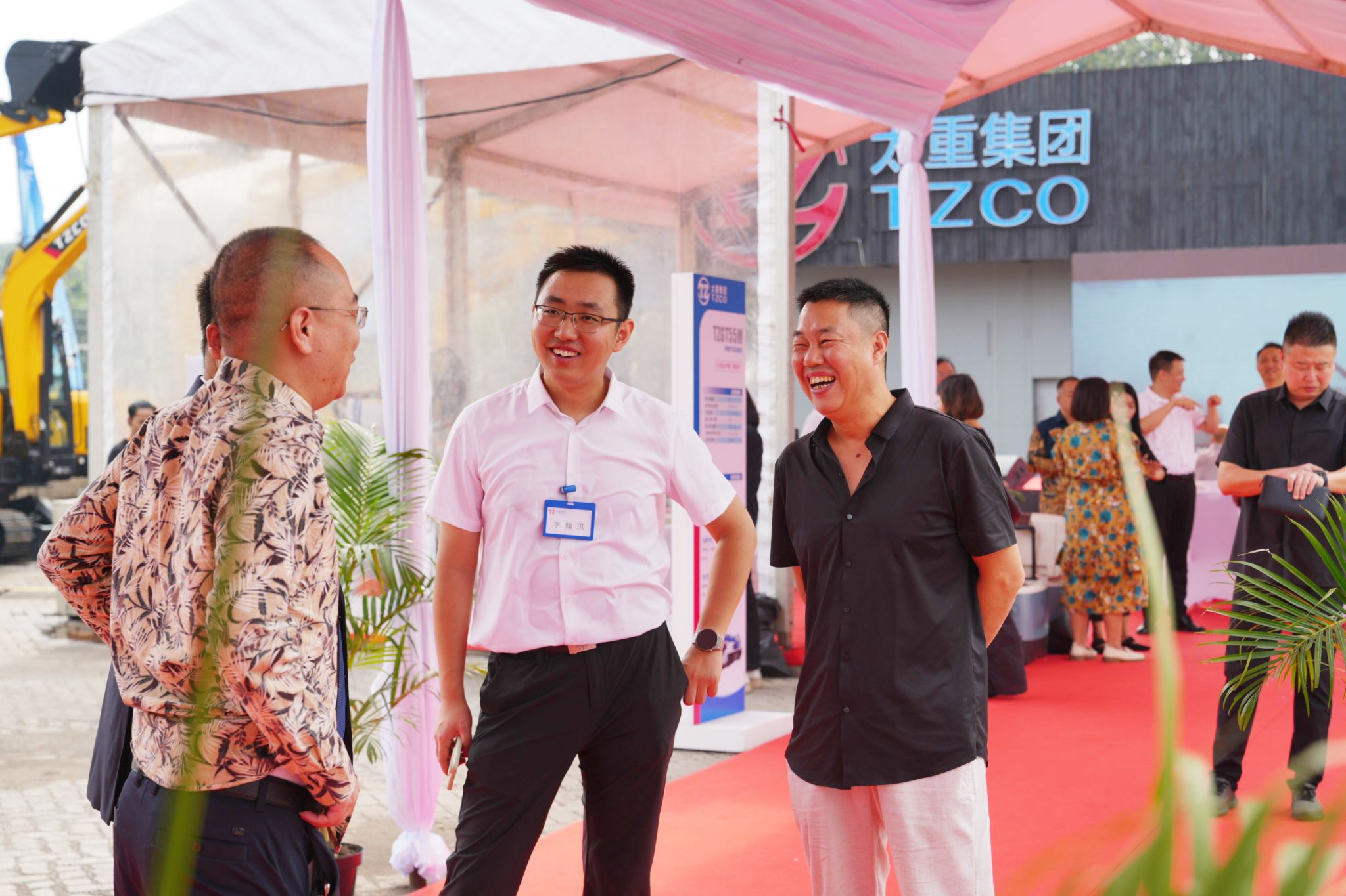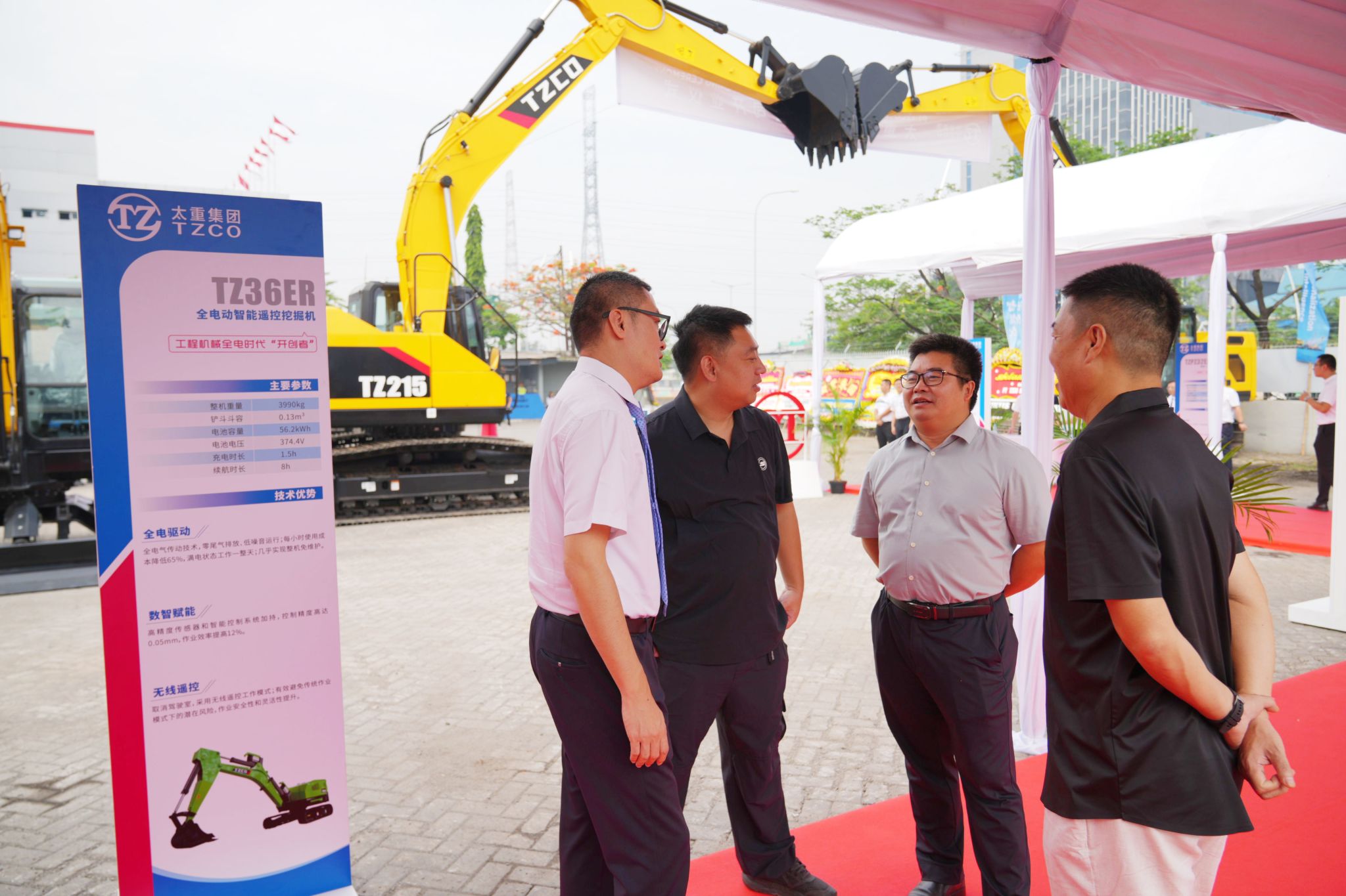 仪式现场热闹非凡,二十余台太重挖掘机环绕而立,擎起强劲有力的钢铁巨臂,欢迎各位与会嘉宾的到来。大家来往穿梭,兴致勃勃地察看太重产品、交流技术创新。太重与用户在此刻紧密牵手,共同畅想未来合作的美好前景。