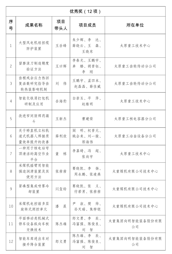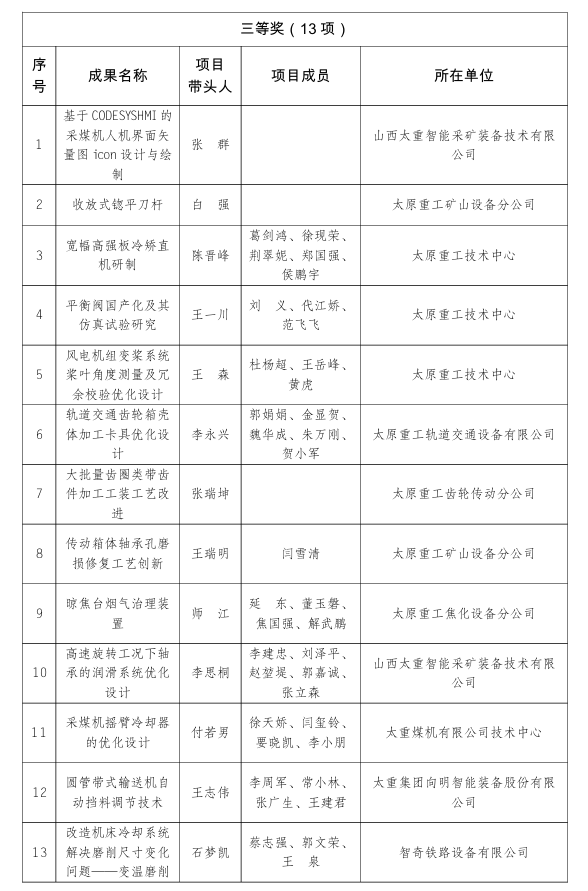 近日,2025年全省“五小”创新大赛及2025年全市“五小”创新大赛获奖名单相继揭晓,集团公司申报的优秀成果取得了可喜成绩。其中,荣获山西省二等奖8项、三等奖12项;荣获太原市一等奖4项、二等奖8项、三等奖13项、优秀奖12项。华体网页版获2025年全省“五小”创新大赛优胜单位。华体网页版工会、太重煤机有限公司工会获2025年全市“五小”创新大赛优秀组织单位,太原重工起重机分公司、太原重工技术中心获2025年全市“五小”创新大赛优胜单位。