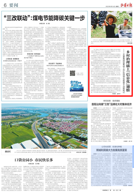 今日山西日报以《乡村治理插上“信息化”翅膀》为题,报道了太重集团积极履行国有企业社会责任,依托企业管理经验,将网格化服务管理工作“精细化、信息化、智能化”,助力基层治理能力高效提升,让乡村治理,因企业信息化手段赋能变得高效。