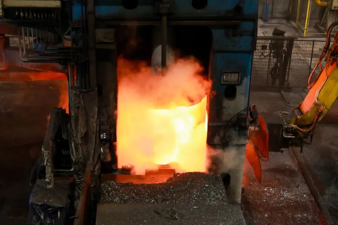 然后对切割好的钢锭进行加热。加热好之后,便可以进行锻造轧制了,通俗地说,就是塑型