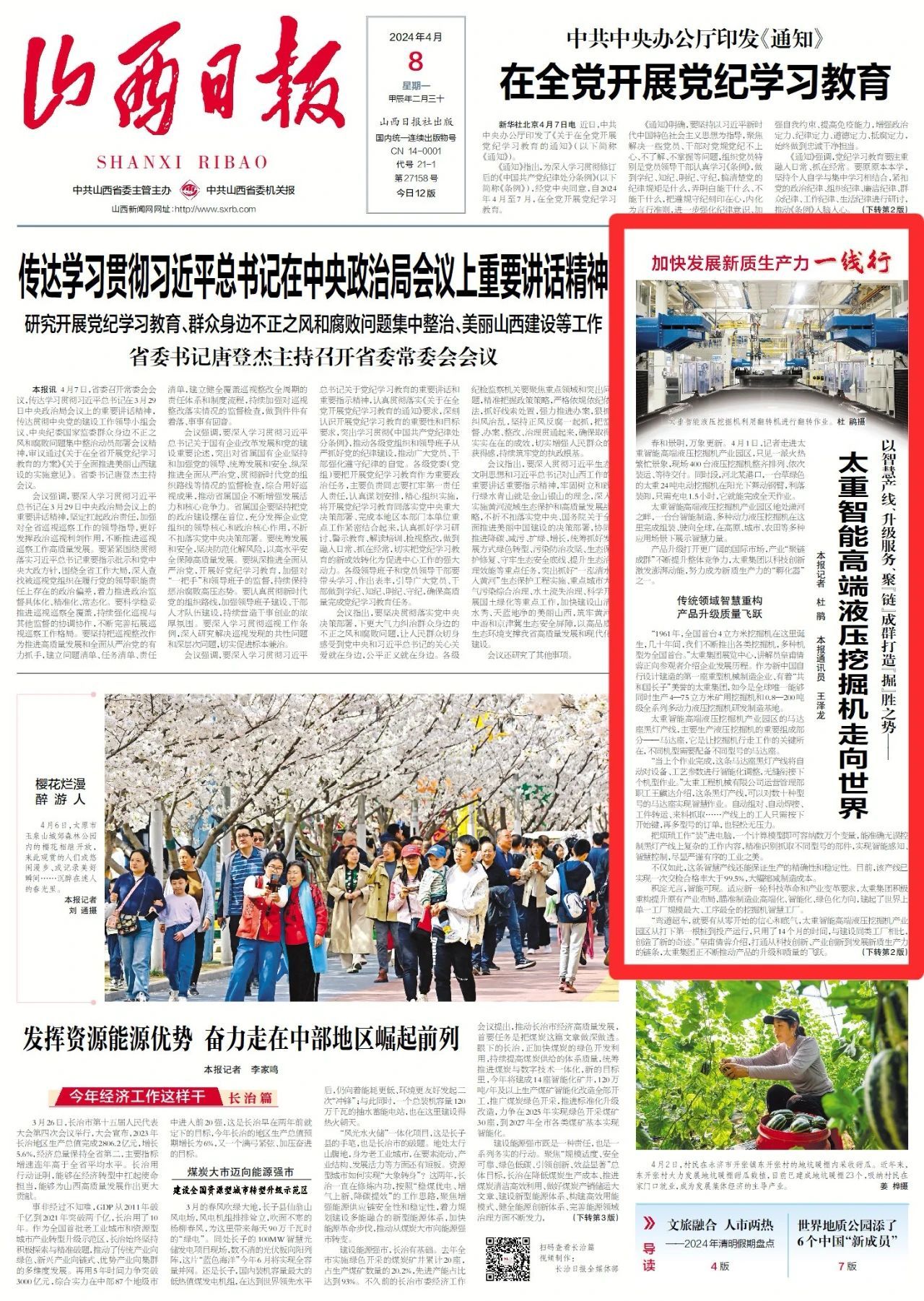 产品升级打开更广阔的国际市场,产业“聚链成群”不断提升整体竞争力,太重集团以科技创新激发澎湃动能,努力成为新质生产力的“孵化器”之一。