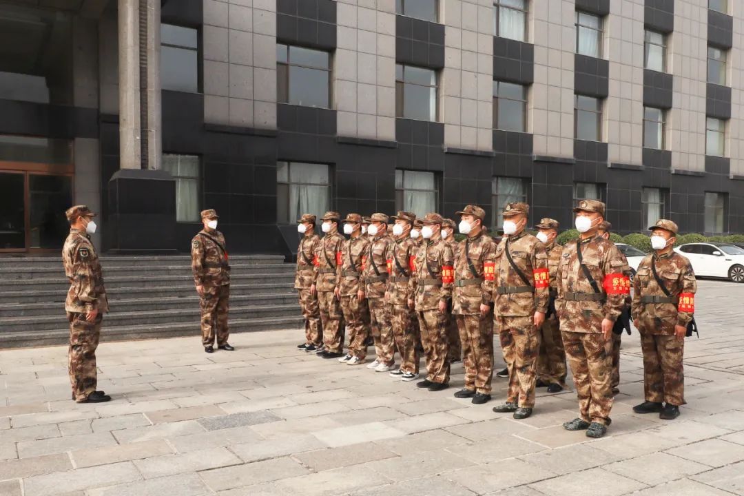 11月24日9点20分,集团公司接到万柏林区人民武装部电话通知,需紧急抽调二十名民兵骨干组成防疫小分队支援万柏林区疫情防控工作。仅用一个小时,一支由退伍军人、业务骨干组成的民兵精锐身着迷彩、整齐划一,在集团公司科技大楼前集结完毕。