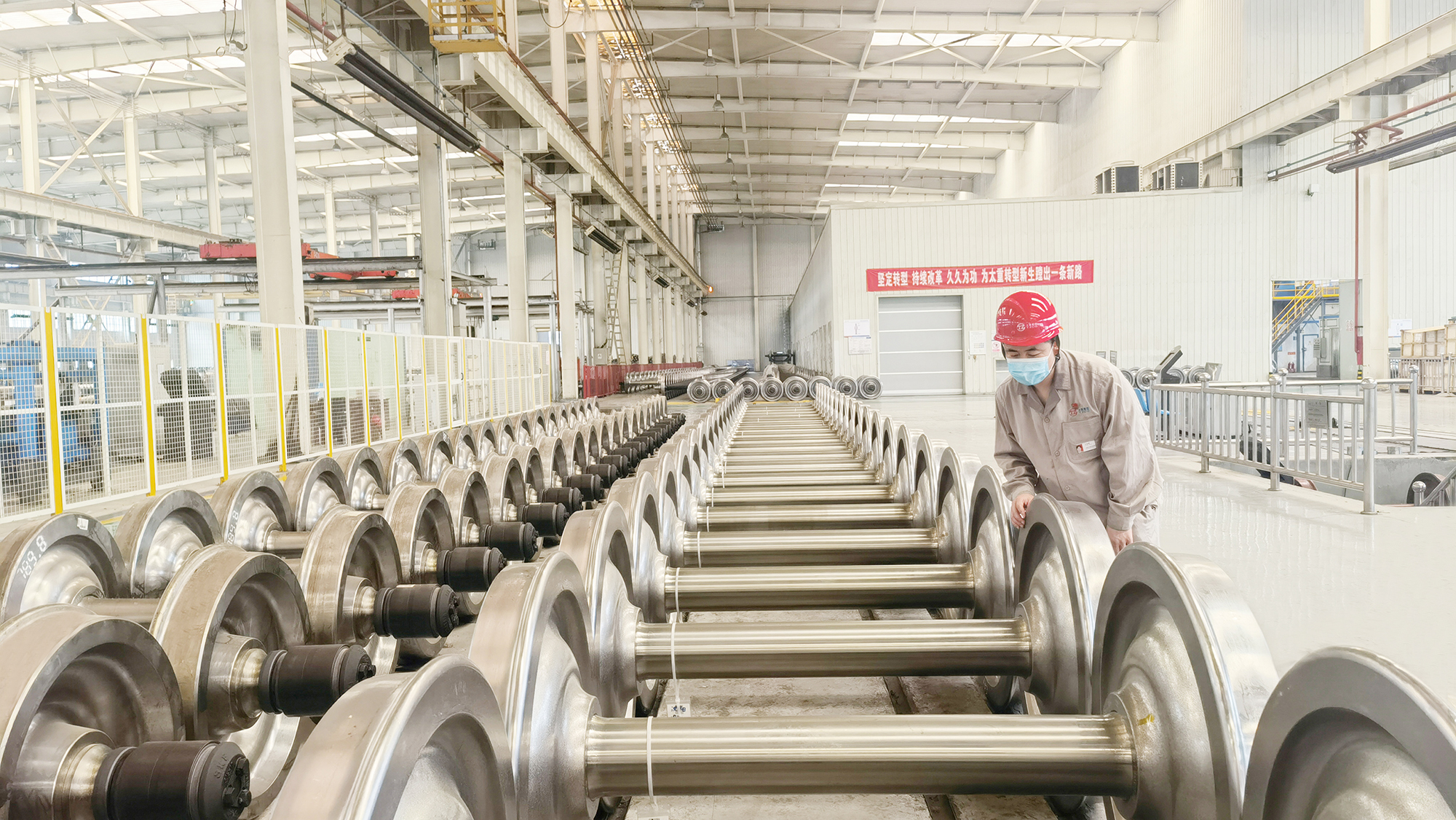世界唯一的轨道交通用车轮、车轴、齿轮箱及轮对全谱系全系列全流程研发制造基地,52秒就能热轧出产一片车轮,代表了世界最先进水平。