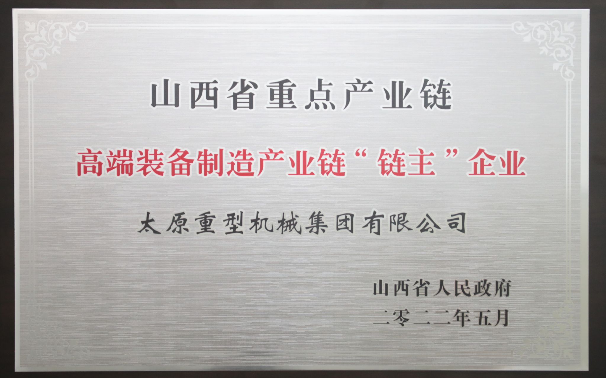 2022年5月27日,全省重点产业链链长制工作会议召开,太重集团凭借在高端装备制造和风电装备领域的突出优势成为首批重点产业链的“双链主”企业。